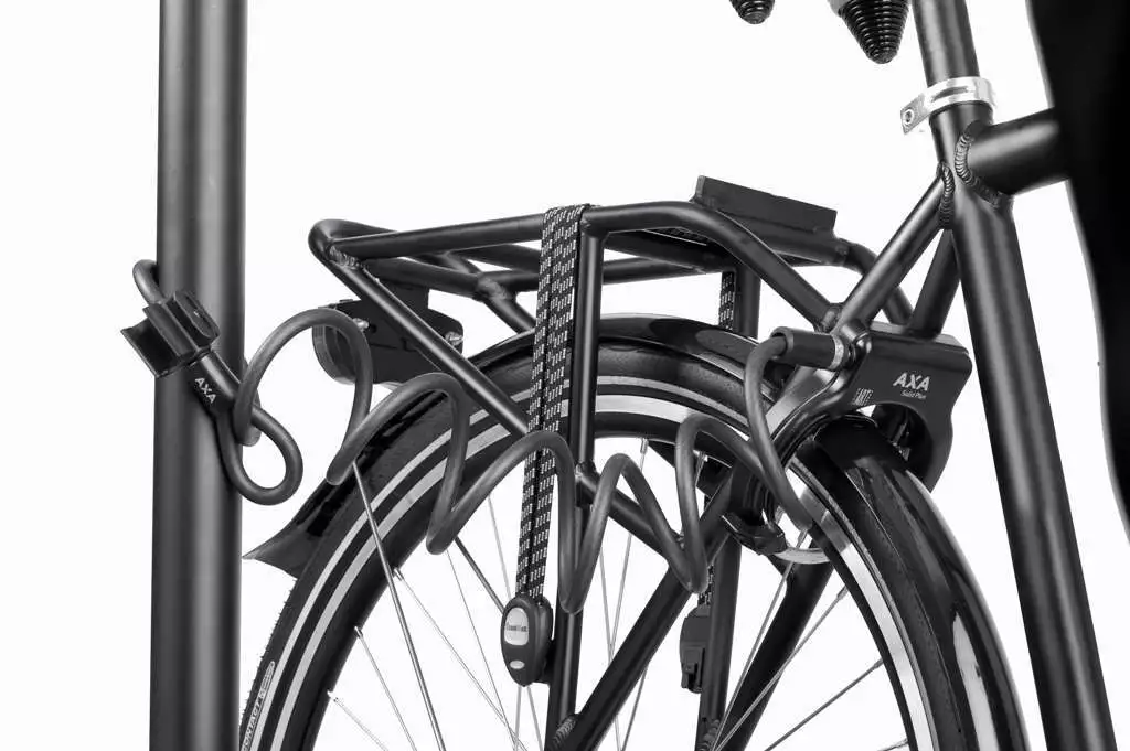 Plug-in kablet bruges i forbindelse med en lås, så cyklen kan låses fast til et andet objekt.
